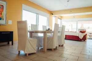 Die beiden Wohnzimmer verfügen über gemütliche Sitzecken und SAT-TV mit deutschem Fernsehen und deutschem Radio. Die beiden Küchen verfügen über alles, was der Hausmann im Urlaub braucht. Spülmaschine (nur in einer Küche), Kühlschrank, Gefrierschrank (nur in einer Küche), Herd mit Backofen, Geschirr, Kaffeemaschine etc. Die Badezimmer (insgesamt 7 Badezimmer) sind modern und zweckmäßig.